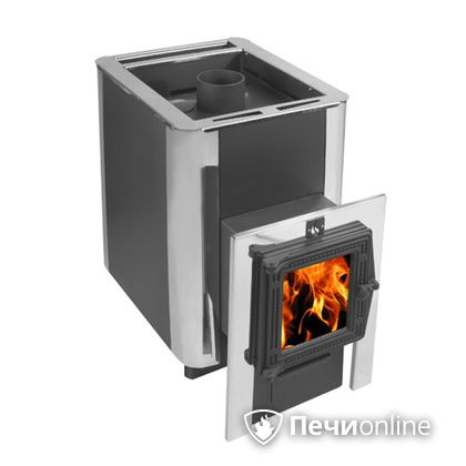 Банная печь изготовлена из стали 4 мм. Максимальный объем парной - 14 м3. Дверца выполнена из чугуна, есть панорамное стекло, через которое вы сможете понаблюдать за пламенем. Топка - выносная, таким образом можно растапливать печь в соседнем помещении. Подавая воду в закрытую или открытую каменки можно создать режим русской бани или финской сауны. Подключается к дымоходу - сверху.