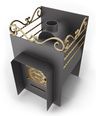 Дровяная печь для бани серии Сабантуй имеет эксклюзивный дизайн, с кованными элементами и национальным башкирским рисунком. Печь способна отапливать предбанник и рассчитана под обкладку кирпичом. Максимальная площадь отапливаемого помещения 20 м3. Трубка изготовлена из стали 09Г2С. Печь топится сухими дровами. Дверца из чугуна. К печи необходимо подключить дымоход диаметром 115 мм.